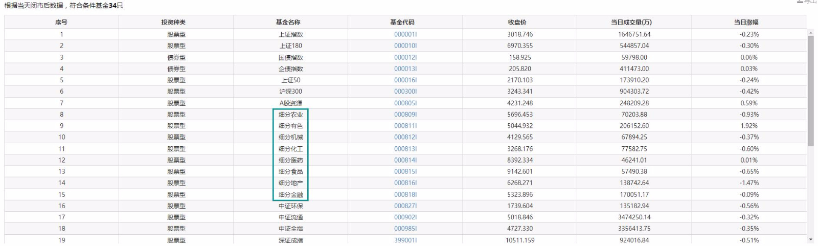 果仁的基金策略中,也有诸如“细分农业、细分有色”等行业指数(如下),但这些数量过少,完全不能涵盖大部分沪深两市股票。