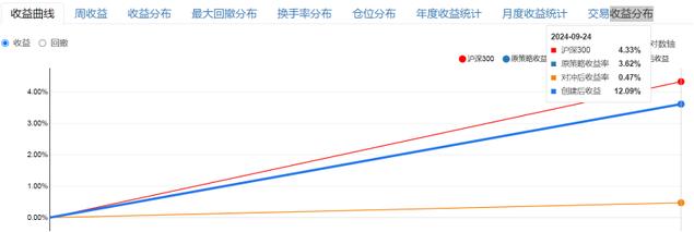 这个对冲策略,9月24日当日,原策略收益率3.62%,沪深300收益率是4.33%,对冲后明显应该是负收益,但显示是正的0.47%。