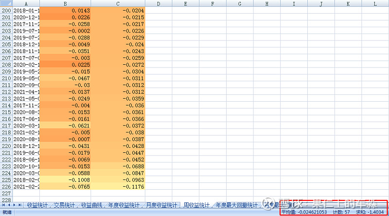 从17年到2021.5.18日,策略合计获得了57次负收益,平均每次获得2.46%负收益。