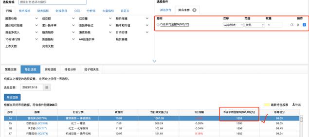 自定义指标2(D点 ):BarRef(20日平均成交额,500-Argmax(收盘价,500)-Argmin(收盘价,500-Argmax(收盘价,500))-10)