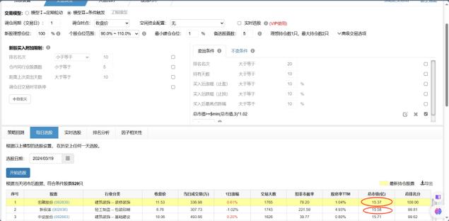 用模型II,单仓。用自定义卖出条件:总市值>=$min(总市值,3)*1.02