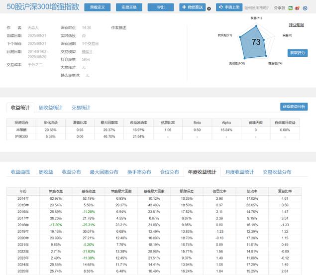 从沪深300指数里面选股,流动性有100,不用考虑容量问题了。换股次数1600多次,也不存在大盘股低换手的过拟合问题了