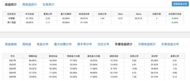 优化后:年化升到了 61%,夏普升到了2.2 ![]()