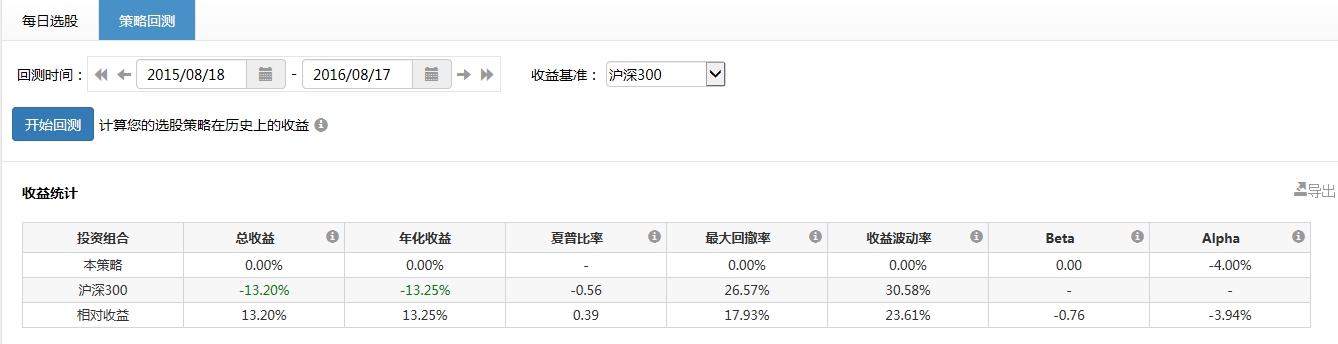 这里顺带曝一个BUG:如果在筛选和排名条件同时加入指标,策略收益为0。