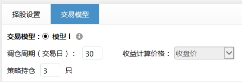 在交易模型方面,可以选择调仓周期、策略持仓数量,在收益计算上,以收盘价为结算标准。