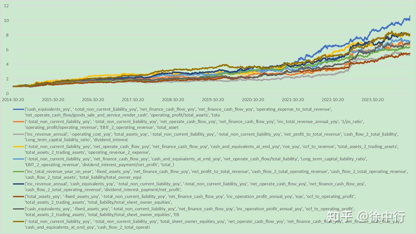 第十组因子评分模型:point = ['-total_non_current_liability_yoy', '-total_non_current_liability_yoy', 'total_sheet_owner_equities_yoy', 'net_operate_cash_flow_yoy', 'net_finance_cash_flow_yoy', 'net_finance_cash_flow_yoy', 'cash_and_equivalents_at_end_yoy', 'cash_flow_2_total_operating_revenue', 'total_assets_2_trading_assets', 'fixed_assets/market_cap'];
