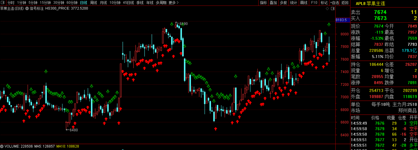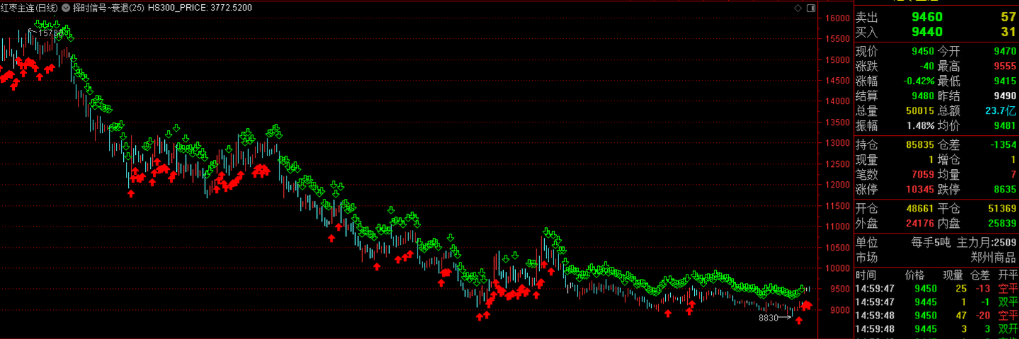 第二、信号出现及时交易,不用等到收盘价确认信号,因商品期货交易手续费相对股票来说更低,及时交易后,等待的风险更低;