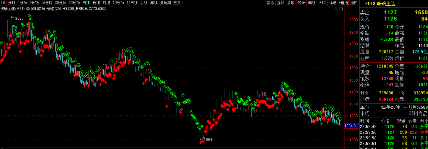 如果这一次,借助于微盘股的"非线性择时模型"可能会有新的突破,并可以进入实质性的产品运营阶段是我简单使用”25天周期非线性择时模型“任意测试的品种:五债主连(图1所示)、30债主连(图2所示)、苹果主连(图3所示)、红枣主连(图4所示)和玻璃主连(图5所示)等。