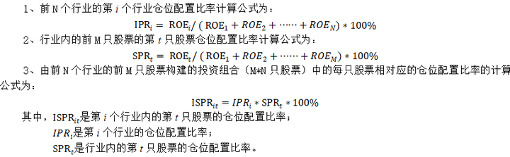 由于投资标的是具有好业绩的股票,并且具有好业绩的股票标的已经被其他研究机构或投资机构不断验证过,也不断表明好业绩的股票具有更加稳定的投资收益率。由此,投资过程中应该对好业绩的行业和股票进行更多的仓位配置,以此来获取好业绩投资标的的投资收益。在投资过程中,净资产收益率(roe)是常被用于衡量行业或股票的业绩高低的好指标,因此本研究也以净资产收益率作为投资组合的行业和股票的仓位配置的基准。具体的计算公式如下: