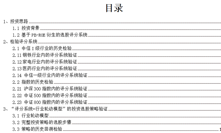 但在投资过程中,我们经常不可避免的会遇到行业轮动问题,因为在不同的时间段内总存在着某些行业上涨的幅度明显大于其他行业的。如果我们直接使用格雷厄姆评分系统在全市场的样本空间内进行投资是否会存在着投资偏差呢?即我们所选出的投资组合可能并没有不是当时上涨的龙头行业内的股票,从而使得我们的投资组合连续跑输市场,同时也错过了投资机会。为此,我们专门开发了一个行业轮动模型来解决以上的问题,并将行业轮动模型与格雷厄姆评分系统进行结合,构建出一个完整的投资选股策略。