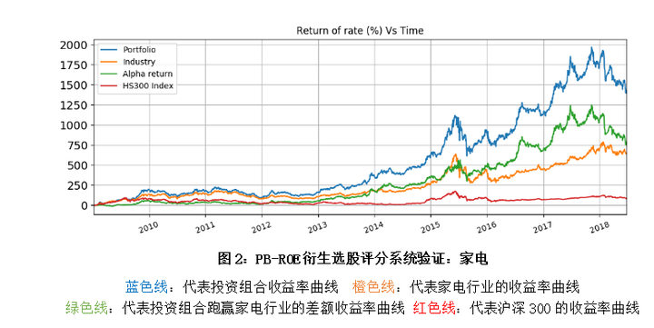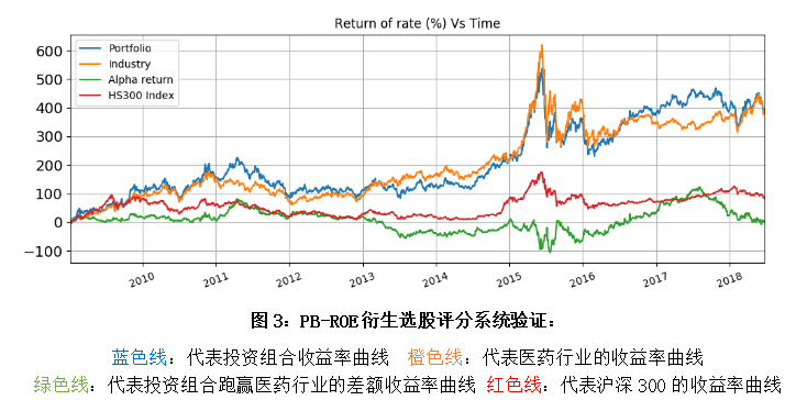 从回测结果来看,PB-ROE衍生选股评分系统在沪深300指数的样本空间内获得了明显超额收益率,并且回测收益率高达800%,其年化收益率大概为24%。由此可见,评分系统在沪深300指数样本空间内是一个很有效的选股系统,并且可以作为投资沪深300指数的选股投资依据。