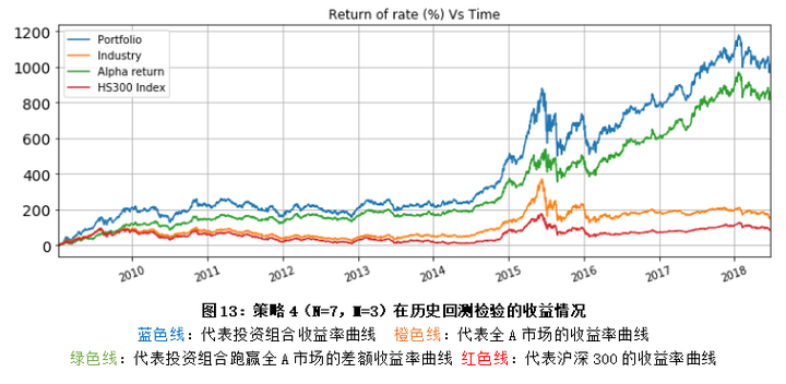 策略4:经过行业轮动模型精选前7个行业,再通过格雷厄姆评分系统在各行业内筛选出前3只股票,以此构建一个21只股票的投资组合;