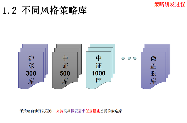 比如我想开发微盘股策略,那么我输入需求条件:a、微盘股成分股;b、按照收益回撤比排序后优先选股前1000个子策略,那么这个自动化开发的模块就会生产我预设条件的微盘股策略库。这一步的实现过程,一般都是在自己开发自己想要的策略类型(如微盘股策略、中证1000增强、中证500增强、沪深300增强等类型策略)或迭代同条件策略库时,才会启动;启动的次数不定和频次不高,同时它可以在任何时间点启动,只要避开将要执行的策略库后,就不影响实盘股票交易过程。