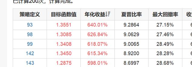 查看之前的智能调优,逐一比对定义参数,没差错,并且年化还变高到六百多了。但按智能调优重新回测也还是年化32.43,如下图![]()