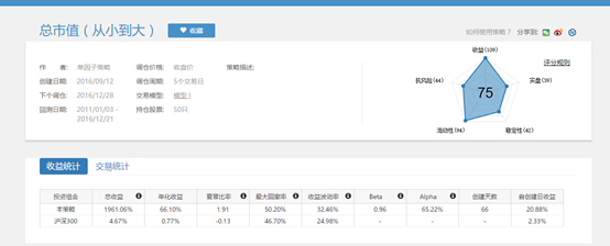 单因子具体数据和历史走势可以参考果仁网官网因子统计页面。