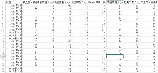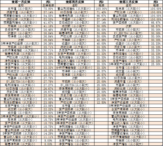 在一些琐碎的统计后,得到每种因子在特定情况下反弹的概率表: