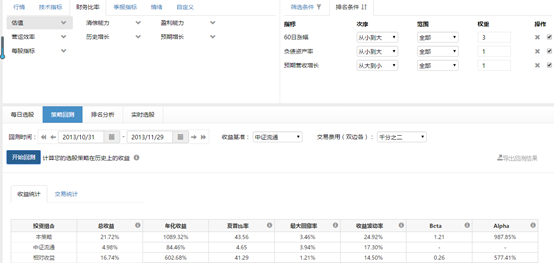 根据反弹概率期望图,再选择反弹期望和概率都较大的负债资产率和预期营收增长,简单根据三因子的期望比值将排序设为3:1:1,。