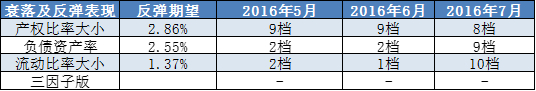 反弹成功的产权比率跑赢了同期中证流通,而三因子组合的表现异常优异,21.98%。